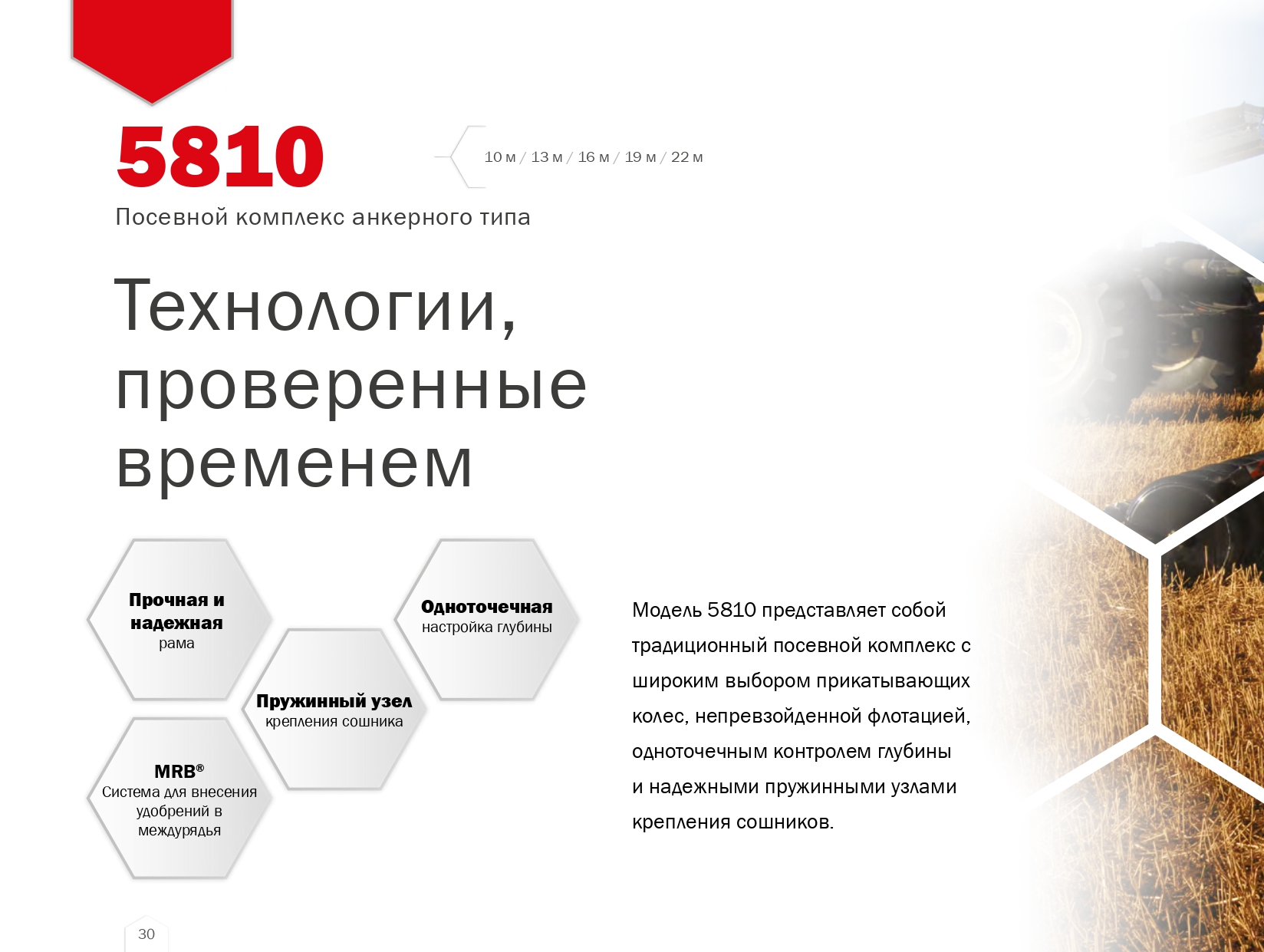 Надежная и продуманная до мелочей конструкция посевного комплекса анкерного типа модели 5810 обеспечивает непревзойденную простоту и доступность технического обслуживания.