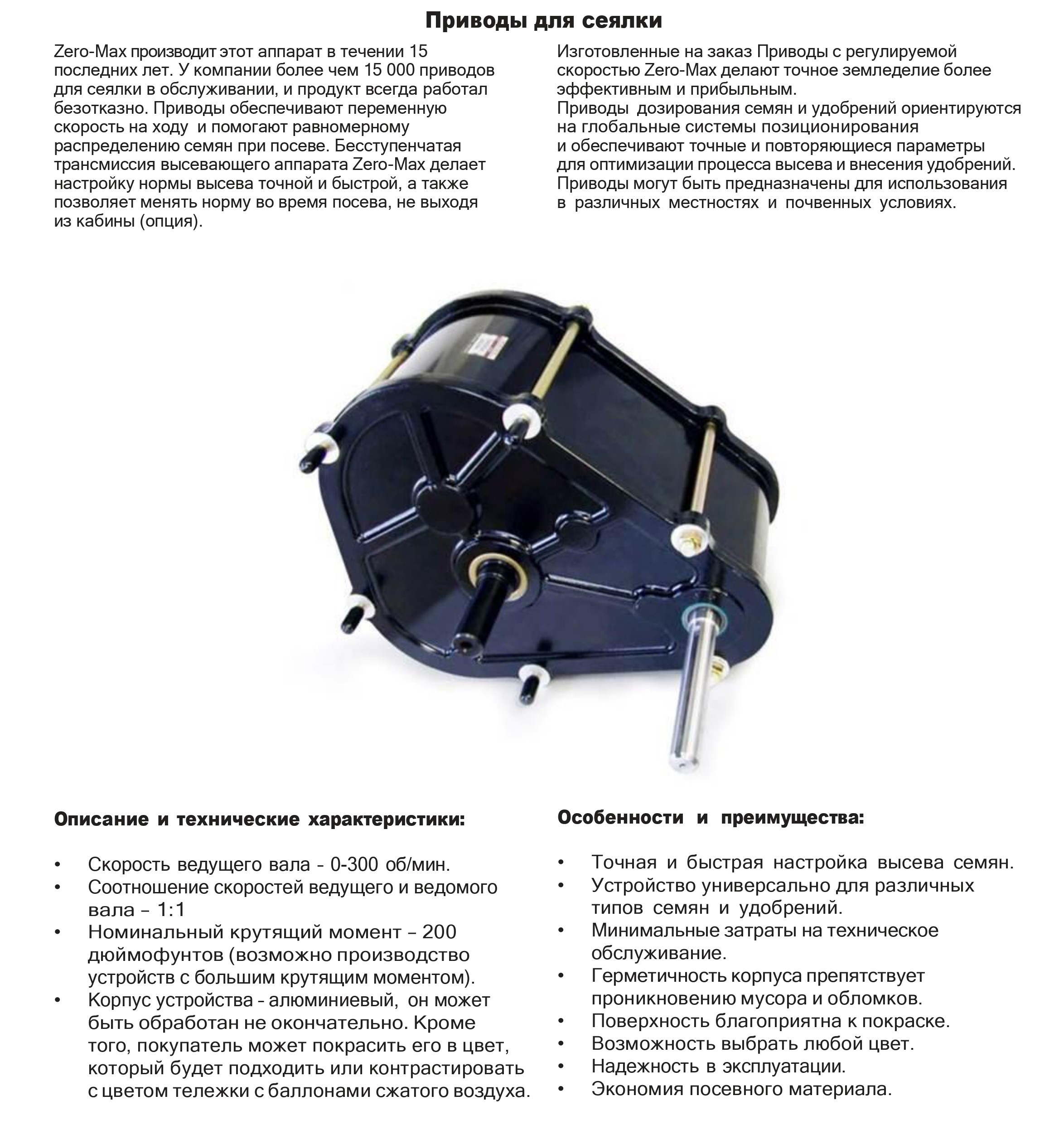 - Приводы для сеялок Zero-Max