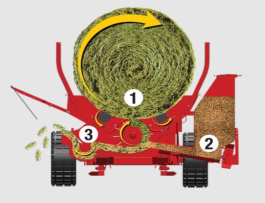 - Кормоизмельчитель дополнительно измельчает переработанное сено и тщательно все перемешивает, создавая идеальный рацион