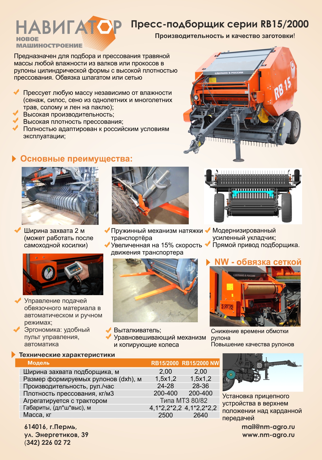 Предназначен для подбора и прессования скошенной травяной массы любой влажности из валков или прокосов в рулоны цилиндрической формы с высокой плотностью прессования.